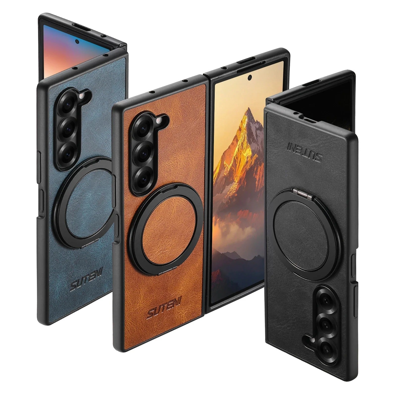 HeritageSpin – Z Fold 7, 6, 5 Vintage Leather 360° Kickstand Case