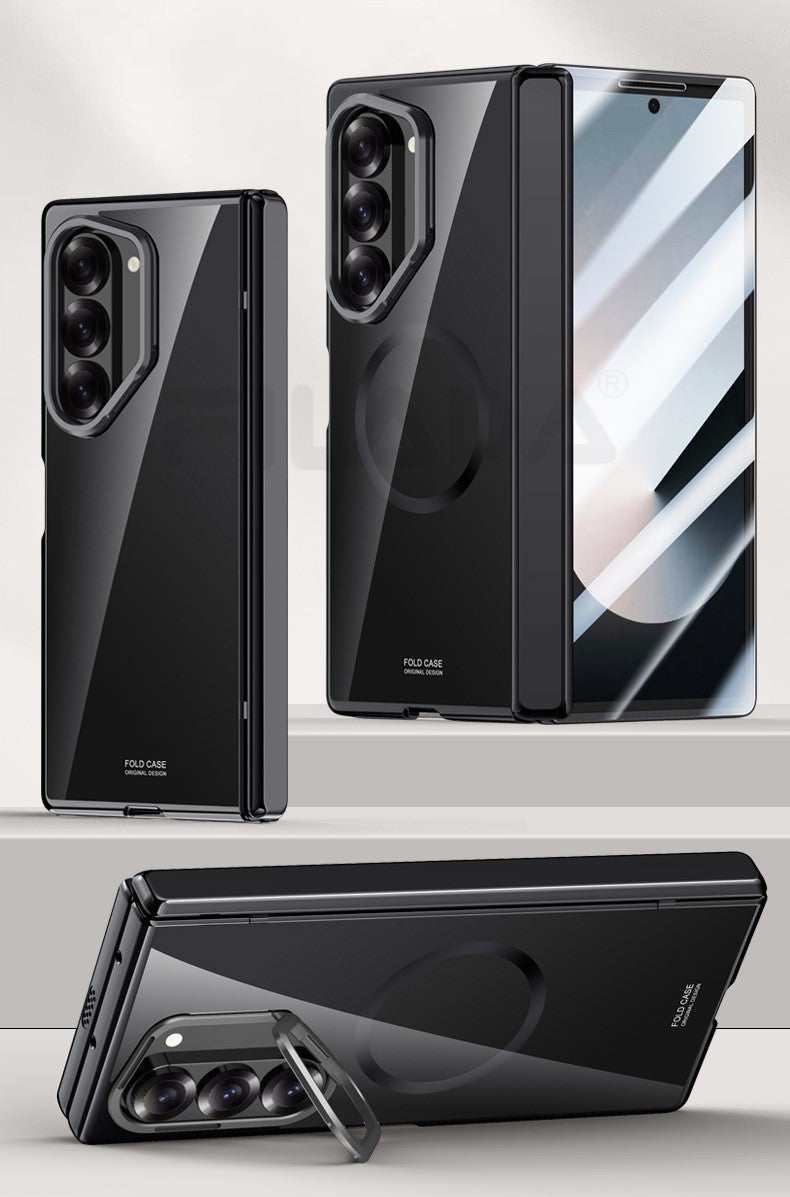 Elevate your Samsung Galaxy Z Fold 7, 6, 5 with the LuxuryGuard Transparent Case. This premium case offers 360° protection and seamless usability. Slim and stylish, it features a crystal transparent back, electroplated finish, and a built-in MagSafe. The LuxuryGuard Z Fold 6 Transparent Case includes a hard back cover, alloy bracket, and tempered film for added safety. Designed to withstand drops, it combines style and durability, ensuring your device remains safe and elegant.